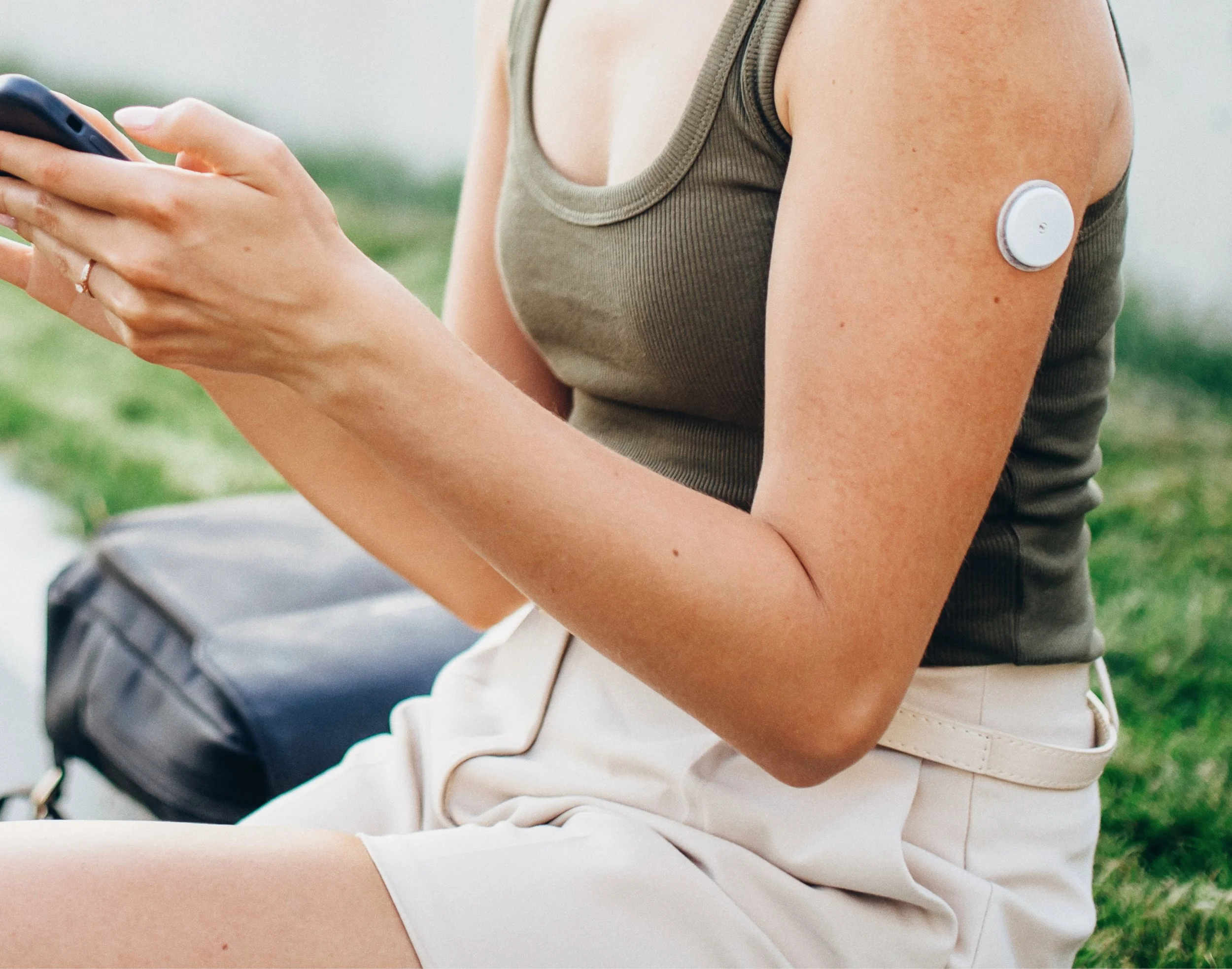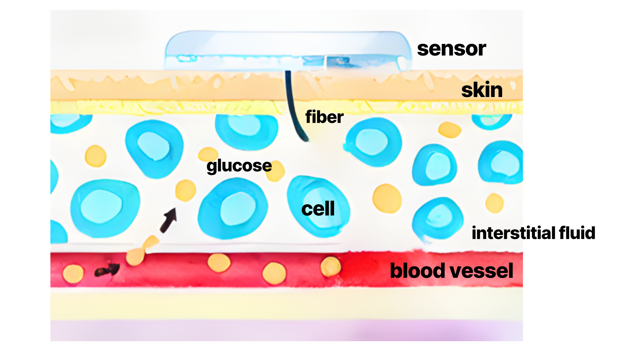 Continuous Glucose Monitors track blood sugar through a tiny fiber that is inserted under the skin with a needle applicator. The fiber is attached to a small sensor that adheres to the back of the arm like a sticker. The needle does not stay in your skin - it is only used for application. Just the tiny flexible fiber stays behind. Applying a CGM is virtually painless. Promise!